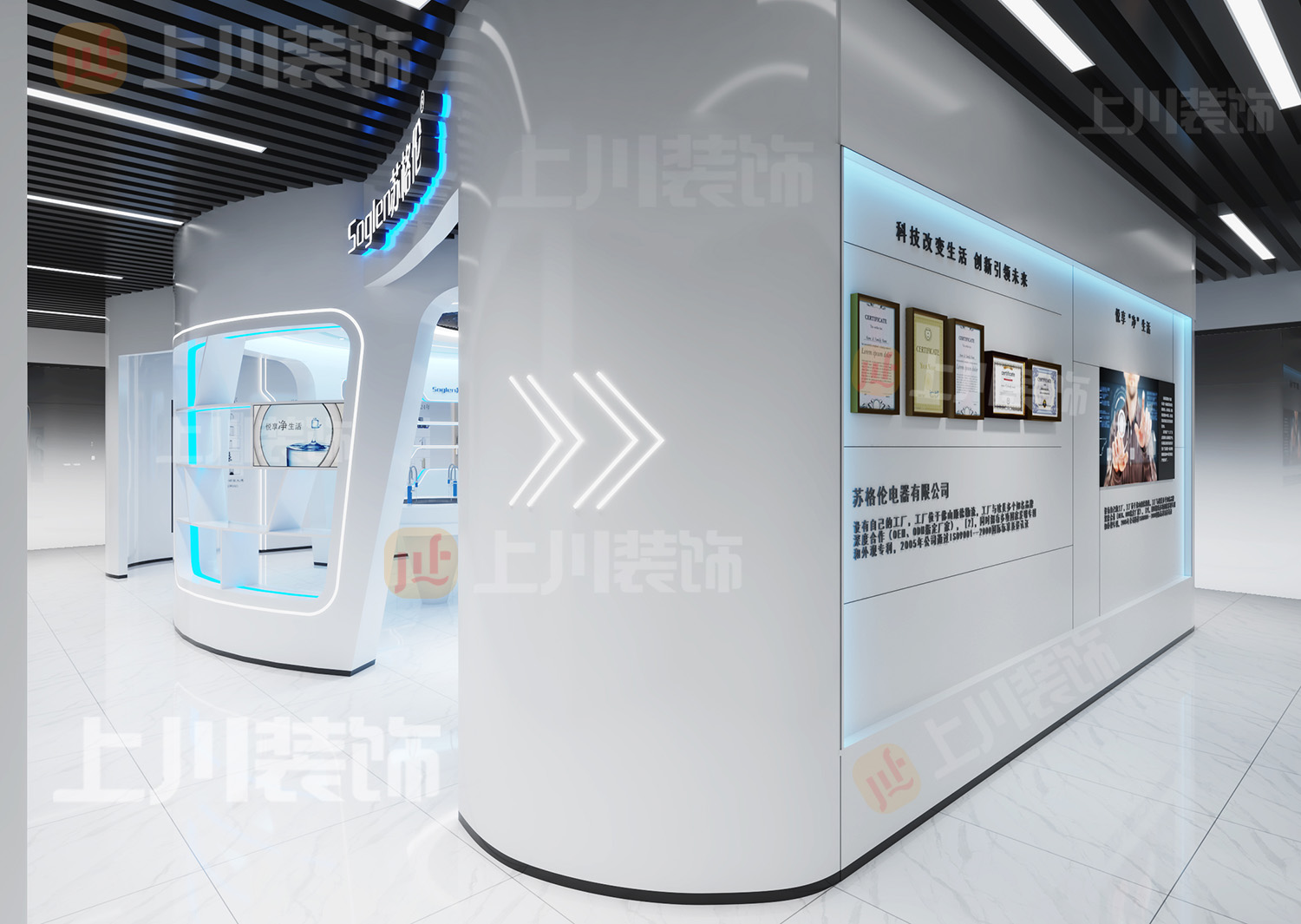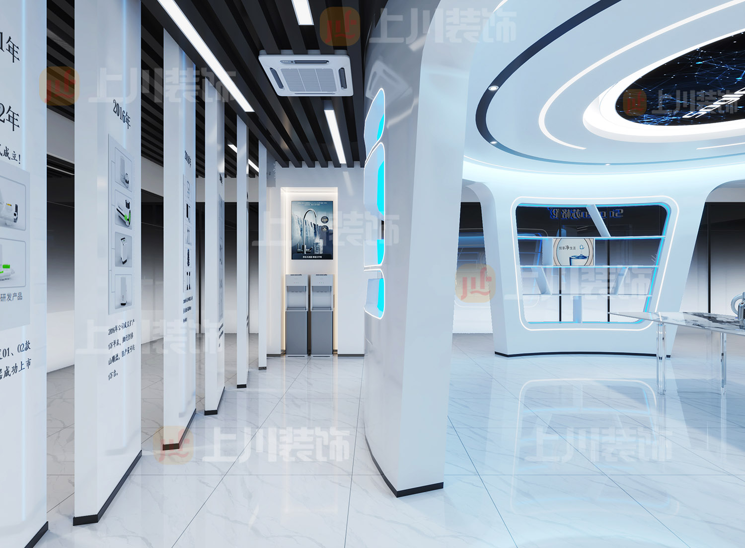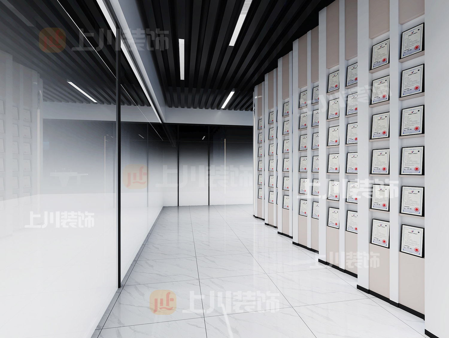 上川装饰专注办公室装修设计:佛山市顺德区办公室展厅装修设计效果图案例