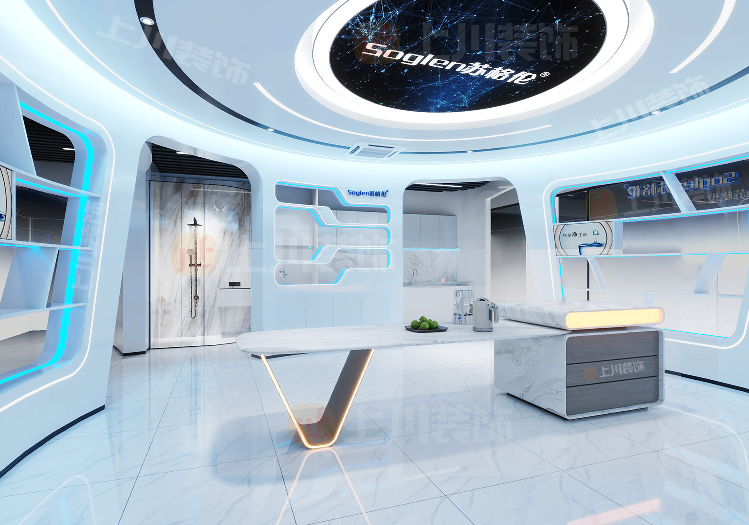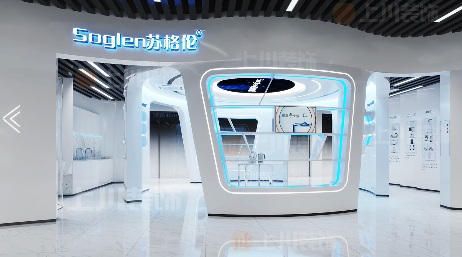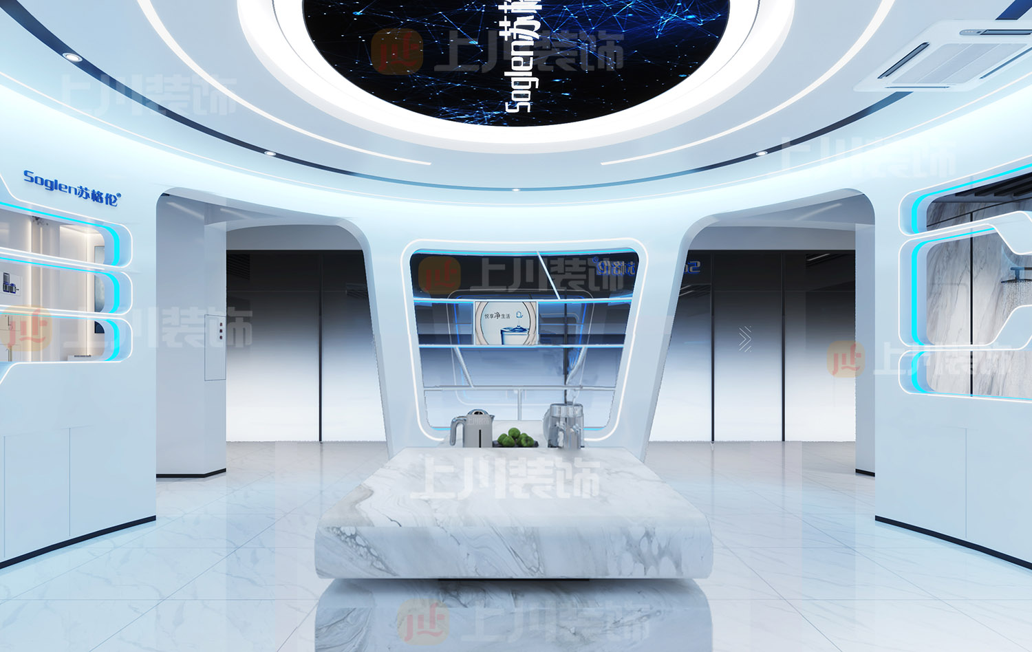 上川装饰专注办公室装修设计:佛山市顺德区办公室展厅装修设计效果图案例